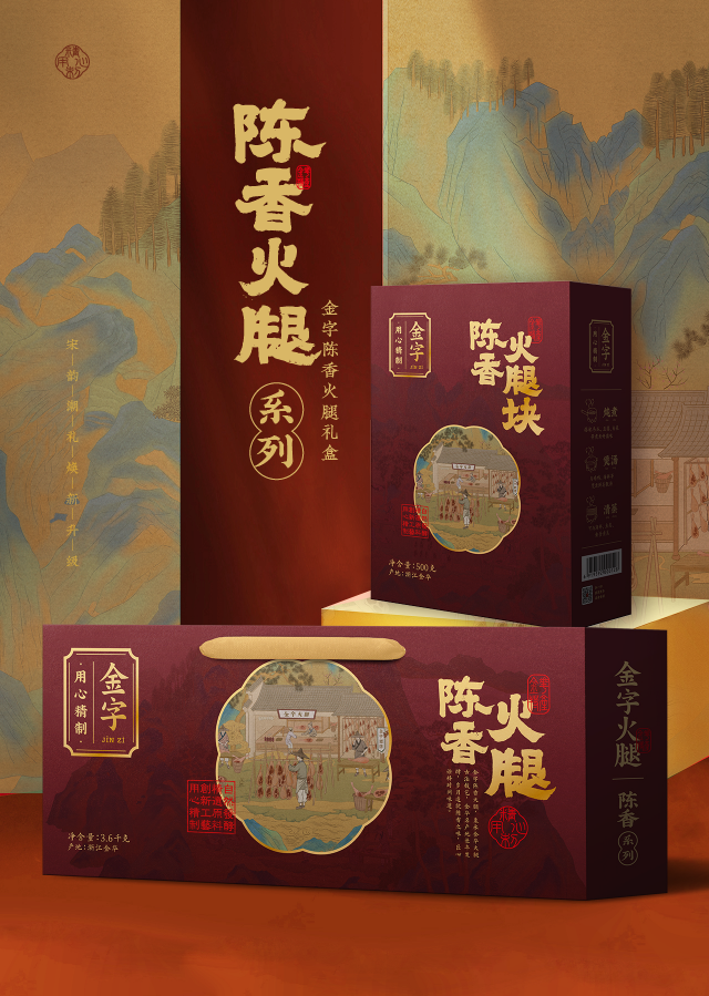 將火腿美食文化演繹出新國潮,“興于宋”的文化感、“宋之美”的價值感、“宋之韻”的精致感,煥新系列包裝最終呈現“宋”之有禮的全新理念。